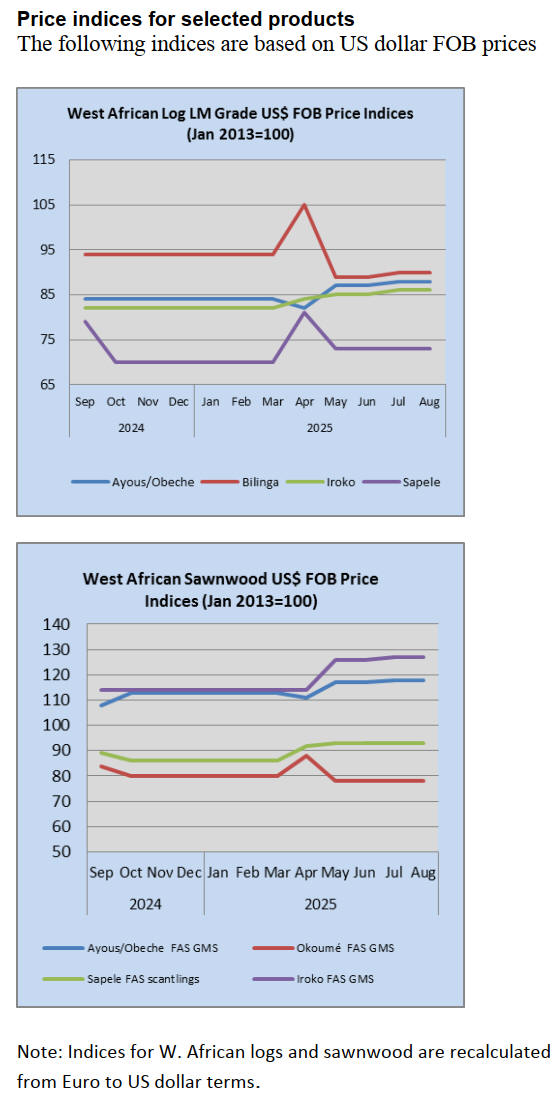 Sapelli, Padouk and a small volume of Azobé and Okan.