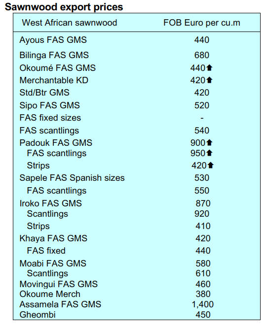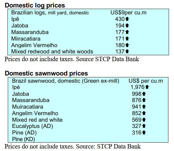 price increases for both logs and sawnwood reflecting