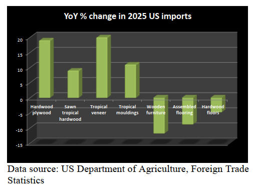 tropical hardwood in 2025, a 9% increase in imports over