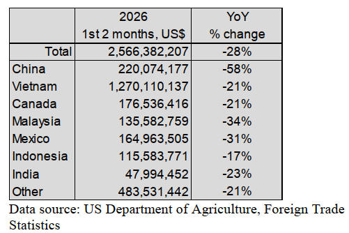 Viet Nam (down 41%) and Indonesia (down 33%) are also