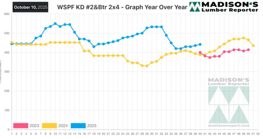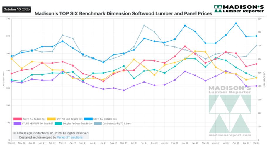 In the week ending October 10, 2025, the price of benchmark softwood lumber