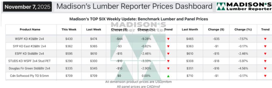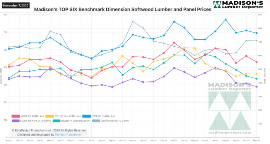 In the week ending November 07, 2025, the price of benchmark softwood lumber