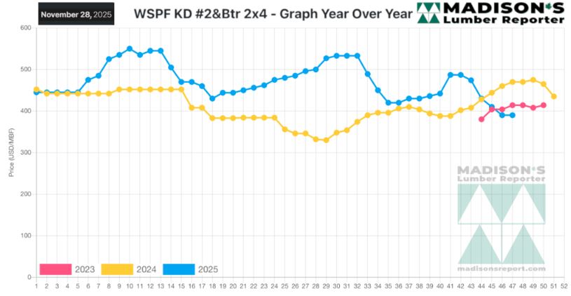 Western Spruce-Pine-Fir 2×4 #2&Btr Kd (Rl) For The Week Ending November 28,