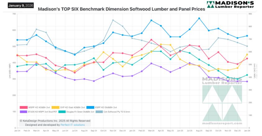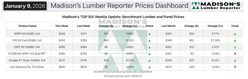 In the week ending January 09, 2026 the price of Western Spruce-Pine-Fir 2×4