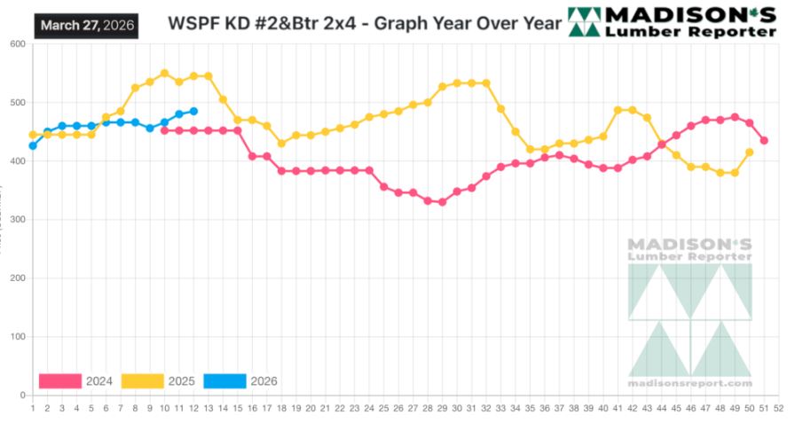 Western Spruce-Pine-Fir 2×4 #2&Btr Kd (Rl) For The Week Ending April 3, 2026