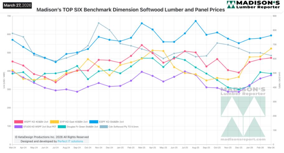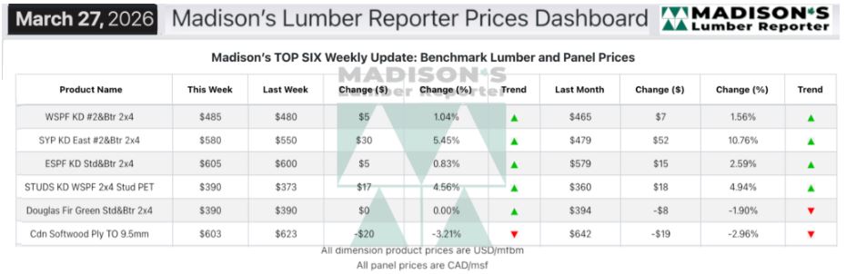 MADISON’S BENCHMARK TOP-SIX SOFTWOOD LUMBER AND PANEL PRICES: MONTHLY