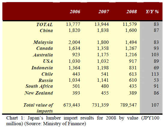 Japan’s lumber imports fall sharply in 2008