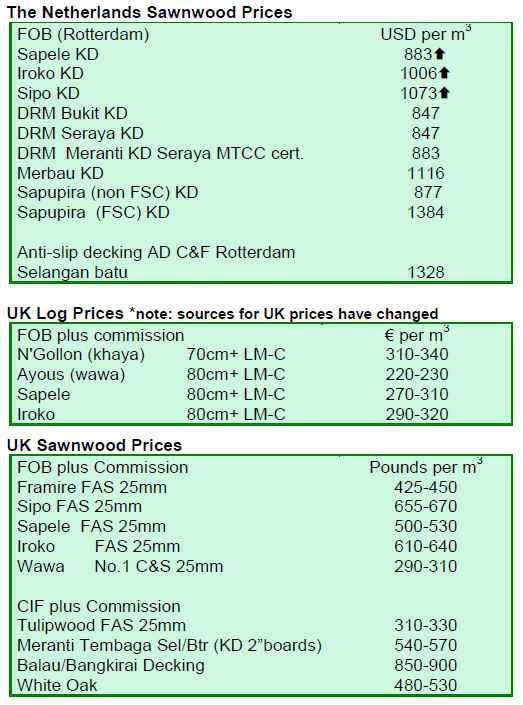 • Price premiums for tropical sawn wood supplied