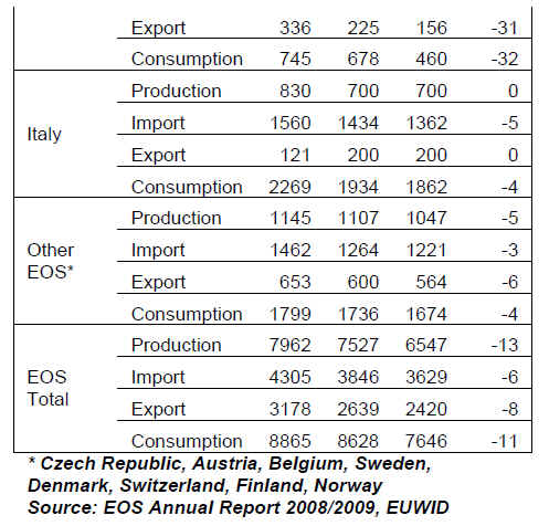 2009 from 8.6 million m³ to 7.6 million m³ (see table). The