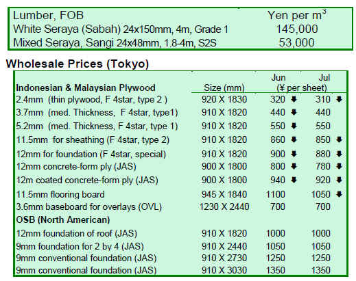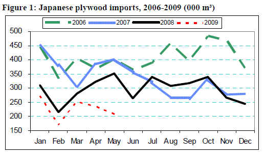 In May 2009, Japan’s plywood imports fell 40.7% by