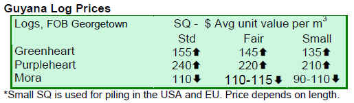 sawnwood (1165/806) and purpleheart (1126/806) have