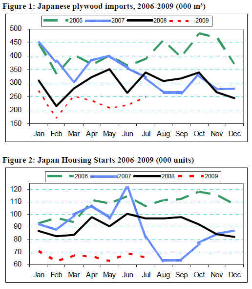 In July 2009, Japan’s plywood imports fell 26.6% by