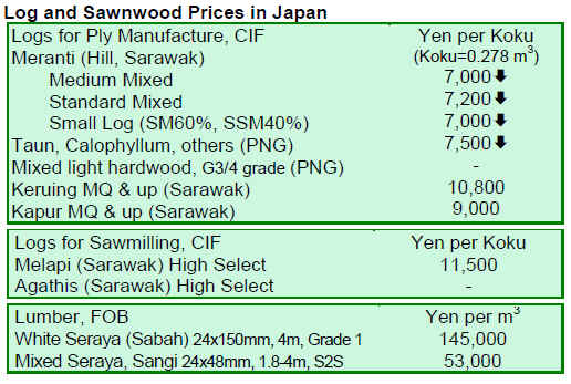 Due to recent low demand for South Sea logs in Japan,