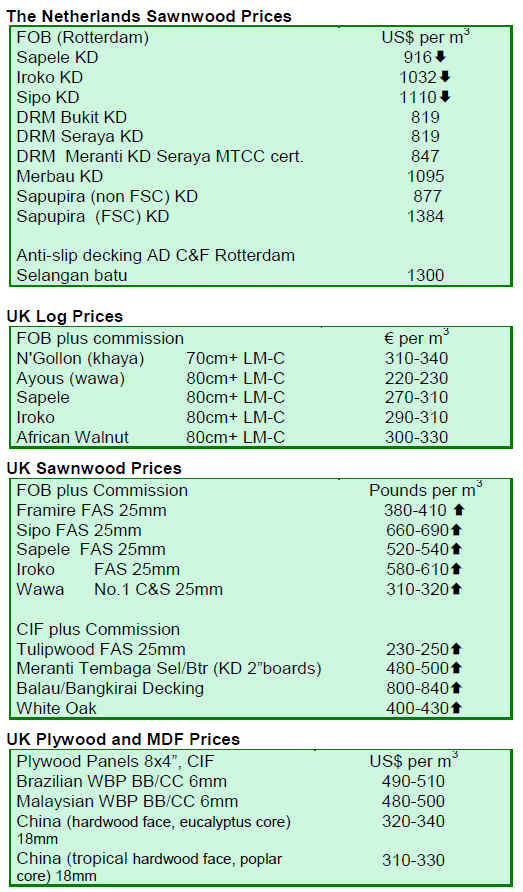 were down only 3%. Greek imports of hardwood