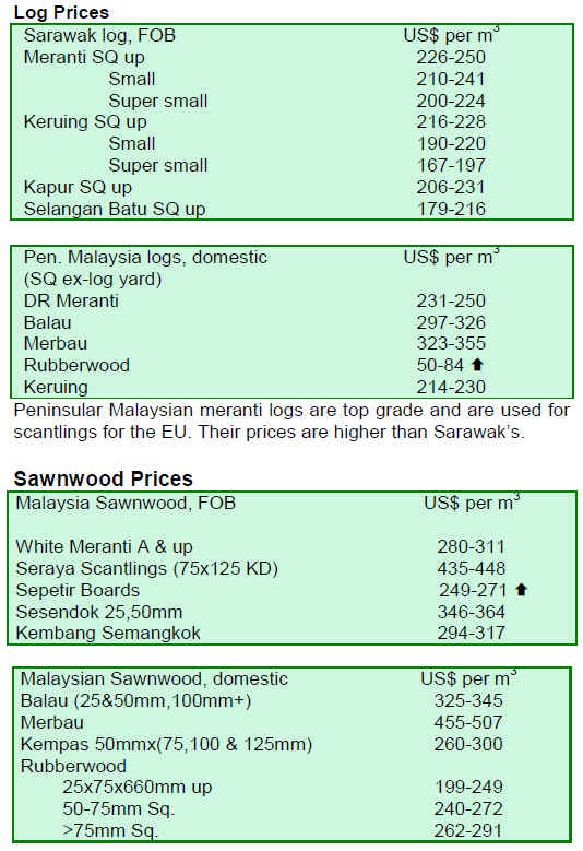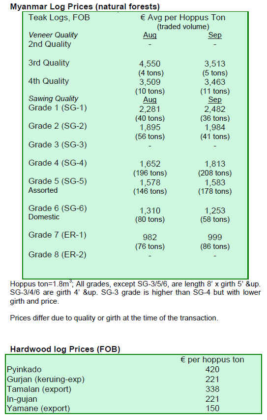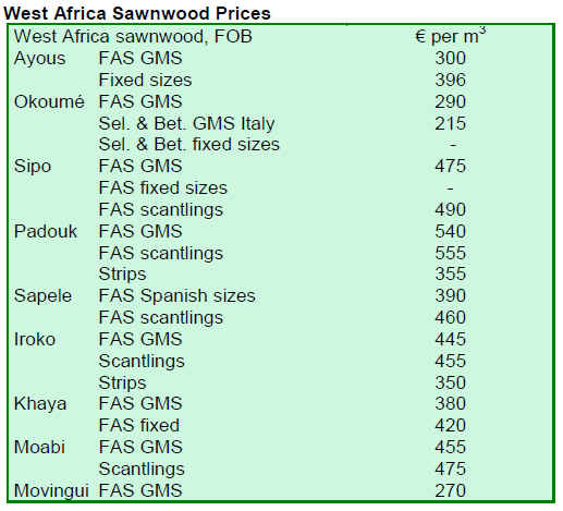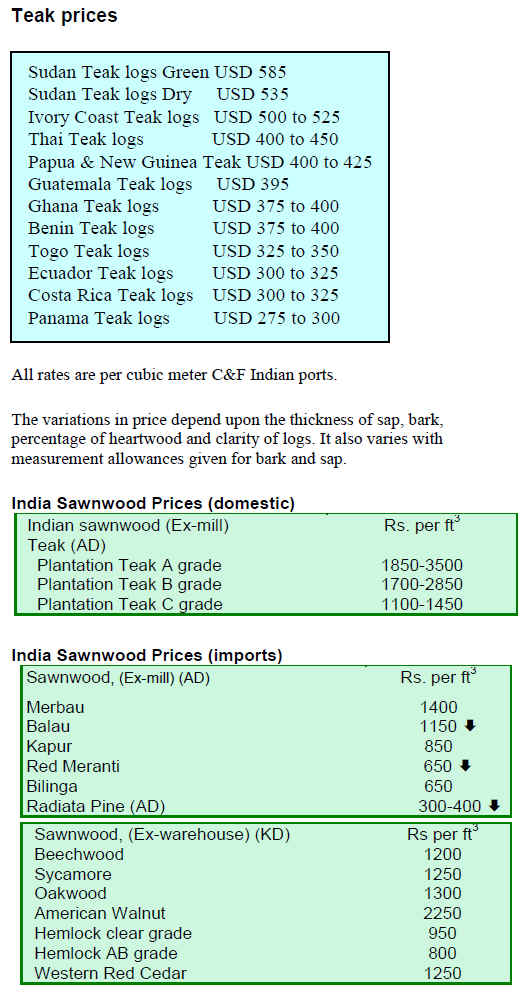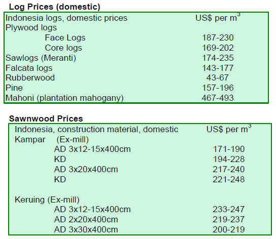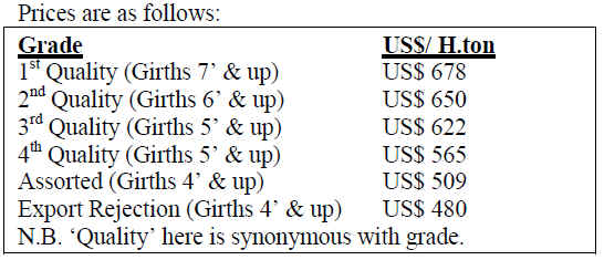 favourable prices (USD 1165/959 per cu.m) for the period.