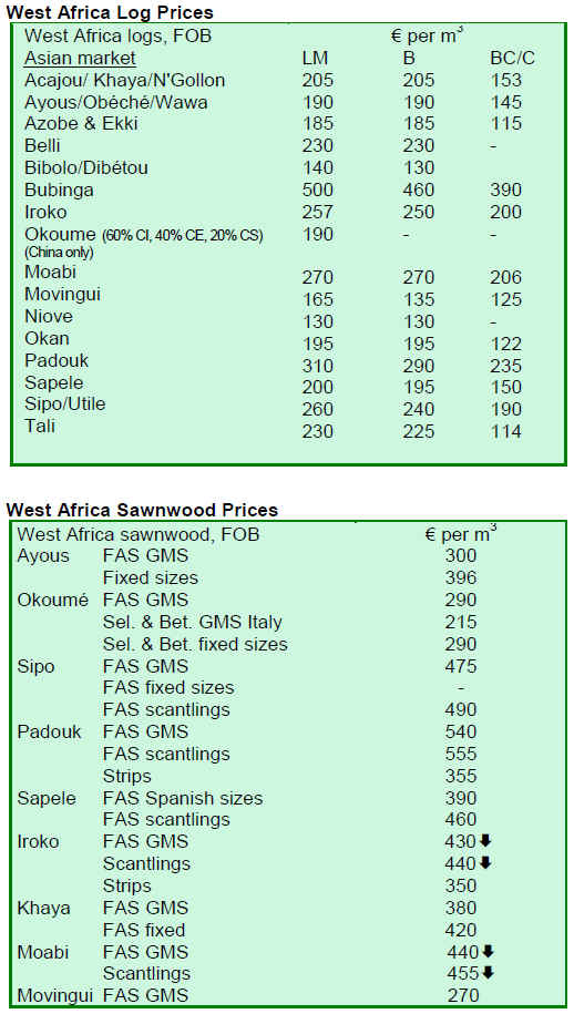 Okoume logs and lumber shipments and prices are holding