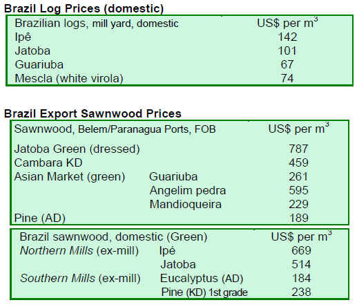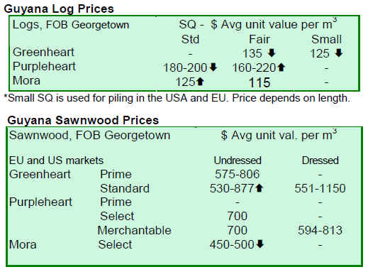 Prices for wood products from Guyana remain generally