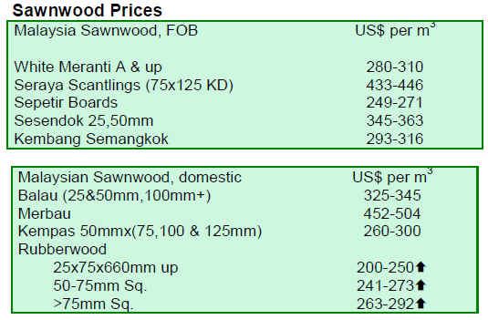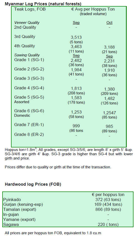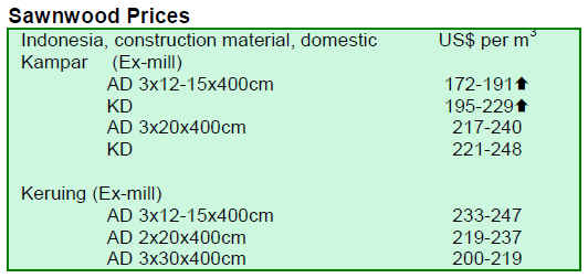 The year end monsoon season failed to lift prices of timber