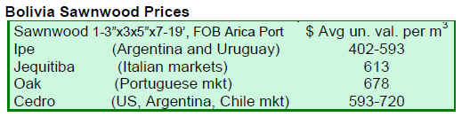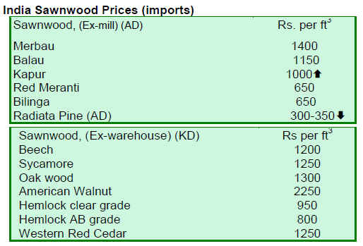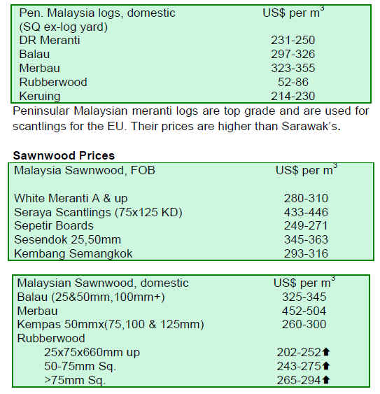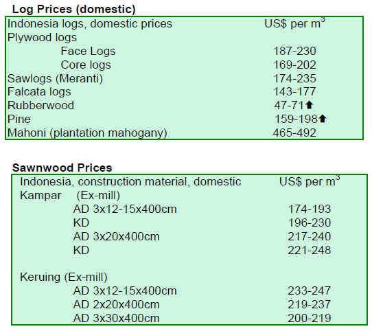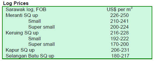 sawnwood prices eased.