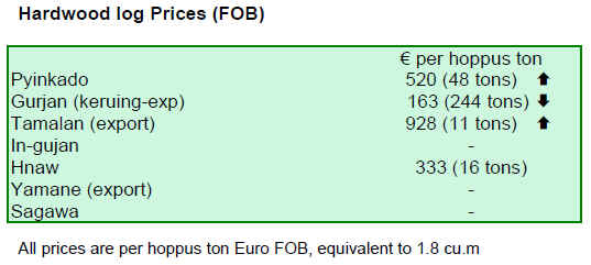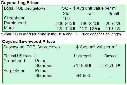 Export prices for Greenheart logs remain unchanged while