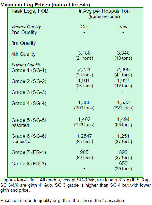 prices for sawnwood achieved a higher average price; this