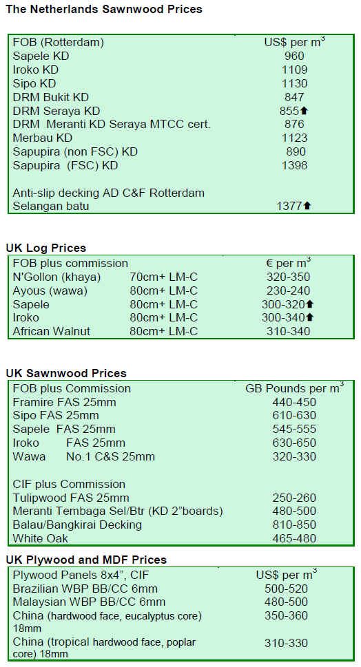 European tropical hardwood consumption next year. Few