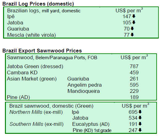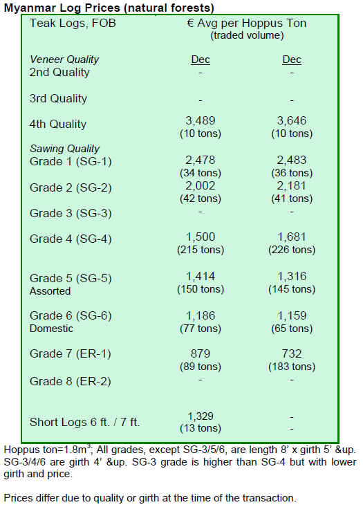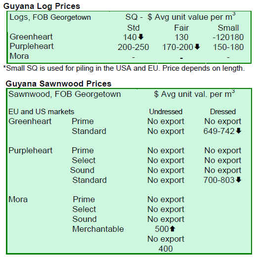 prices for dressed Greenheart and Purpleheart recorded a