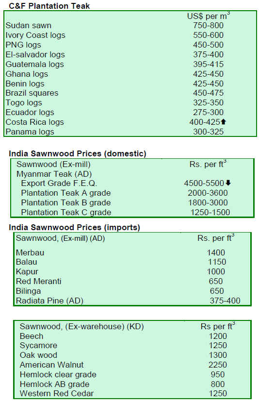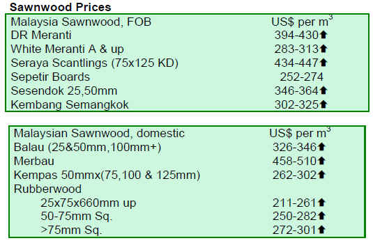 increase in enquiries for sawnwood for the Asian markets