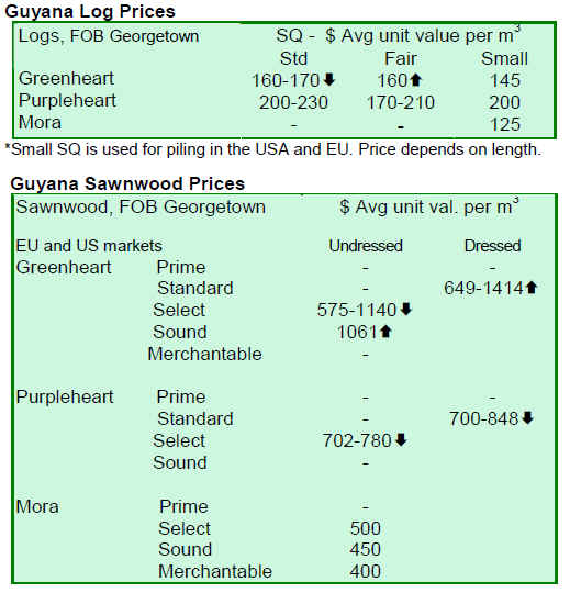 Dressed Greenheart prices for this fortnight period moved