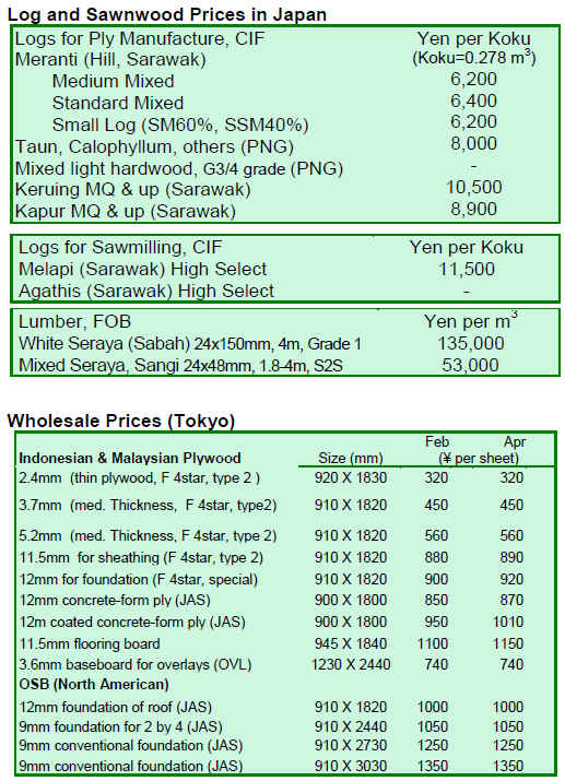 March. Prices of Yen 5,400 for Meranti Small and Yen