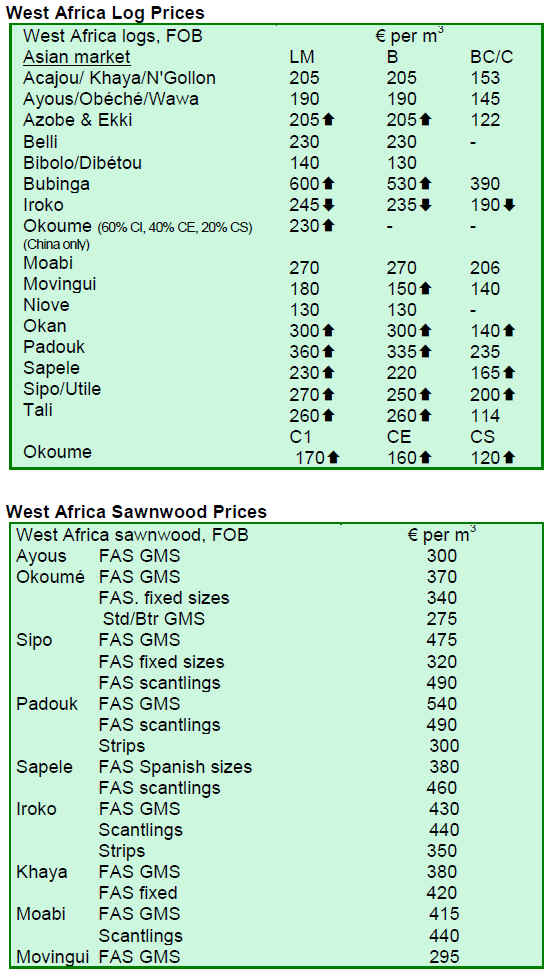 There are some indications that North European importers are prepared to offer higher prices because of their low stocks and limited availability of sawn lumber. Traditionally, importers have relied on stocks held by African exporters with fast and regular shipping schedules.
