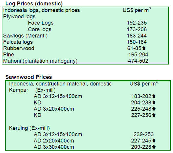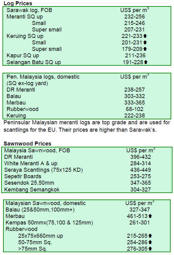 The current economic situation in EU and North America is such that it is difficult for producers to increase sawnwood exports or secure higher sawnwood prices. This is causing problems for sawnwood producers who have not been able to pass on the higher sawnwood production costs arising from increased log prices.