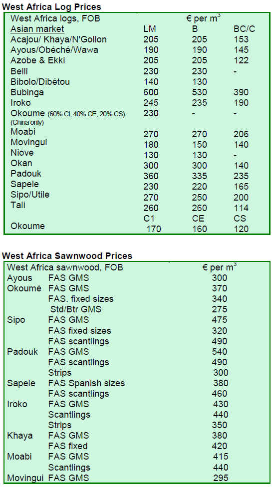 This lull in buying also gives time for the authorities in Cameroon and Congo Brazzaville to review their regulations on log exports for the second half of the year.
