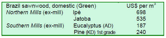 Some of the exported value-added products with an upward trend in prices during this fortnight were outdoor garden furniture made from locust (courbaril, jatoba) and mouldings from red cedar (cedro) and crabwood (andiroba). Other exported value-added products were handicrafts, doors, door components and indoor furniture.