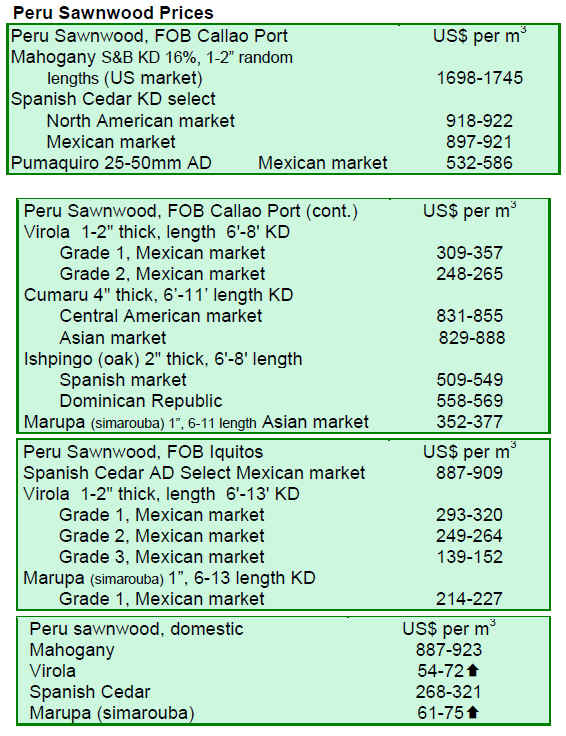 The Export Association of Peru (ADEX) has reported that April 2010 exports of wood products were US$ 15.4 million, up 36% from the levels in April 2009. Three main buyers were China, United States and Mexico which together accounted for 82% of the total export volume.