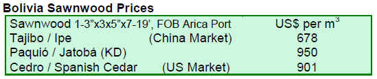 The main reason for brisk exports is the recovery of imports by the US, which is the principal market for Bolivian forest products.