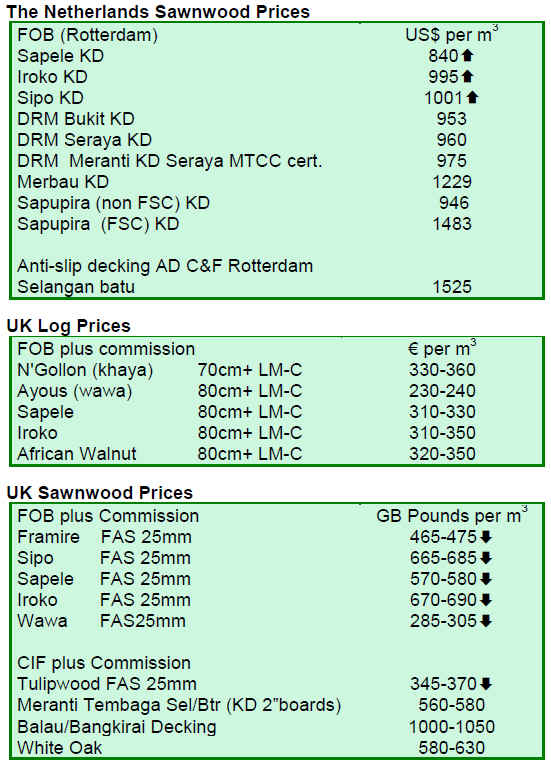 Overall market conditions for tropical wood products in Europe remain very subdued. There continues to be uncertainty over the sustainability of economic recovery in the EU now that government stimulus measures are being removed and austerity measures are being introduced in an effort to calm market concerns over the level of public debt. The construction sector 每 particularly new residential activity 每 also remains very weak across the EU.