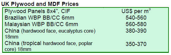 In the sawnwood sector, there are signs that manufacturers requiring a dark or red tropical look are increasingly looking to take more widely available lighter temperate species such as beech, tulipwood, and maple to which they will apply a stain. In the plywood sector, South East Asian products are being replaced by Russian birch and Chinese plywood products.