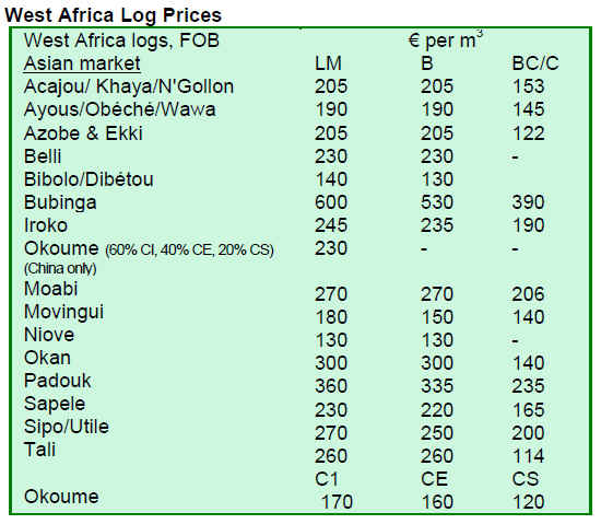 The log trade in West and Central Africa remains quiet as buyers in consumer countries review stock levels and deliberate how markets will develop under current uncertain economic conditions.