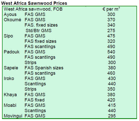 Demand for sawnwood has revived to some extent and producer mills in the West and Central Africa say that they have strong order books with deliveries extending into the 4th quarter.