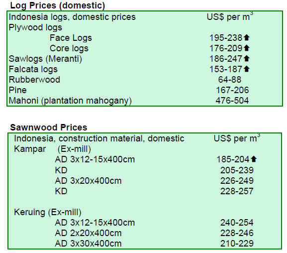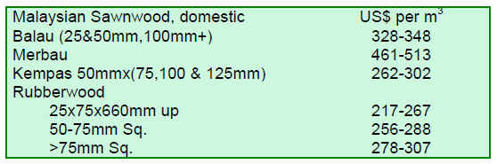 Prices for Malaysian timber products experienced some gains across the board during the period under review.