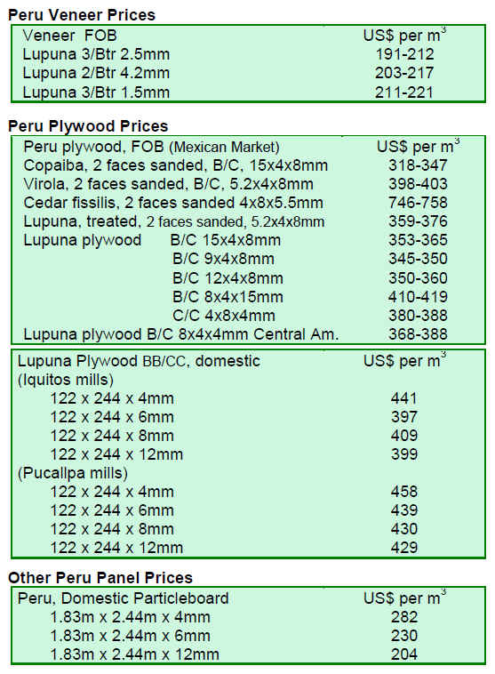 International Plywood and Veneer Prices