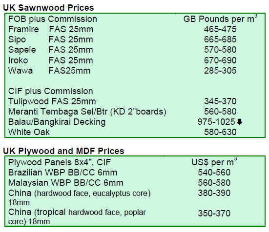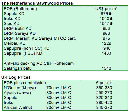 In relation to the European hardwood market, the UNECE/FAO Review shows that consumption of sawn hardwood across Europe fell by over 9% in 2009. European hardwood consumption has been particularly affected by slow demand in the furniture and parquet industries and by large downturns in Italy, France and Germany.
