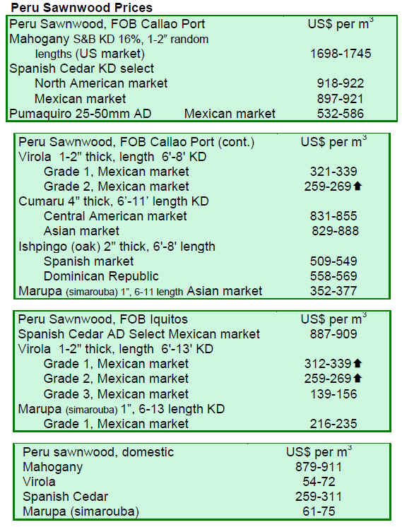 For sawnwood, undressed greenheart (select) prices gained from US$933 per cu.m to US$1,060 per cu.m over the period under review, while prices for undressed greenheart (merchantable) remained stable. Undressed purpleheart (select) gained from US$1,000 per cu.m to US$1,350 per cu.m while mora sawnwood prices were steady.