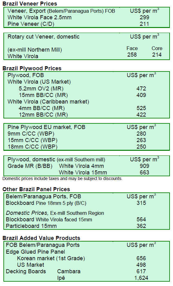 International Plywood and Veneer Prices