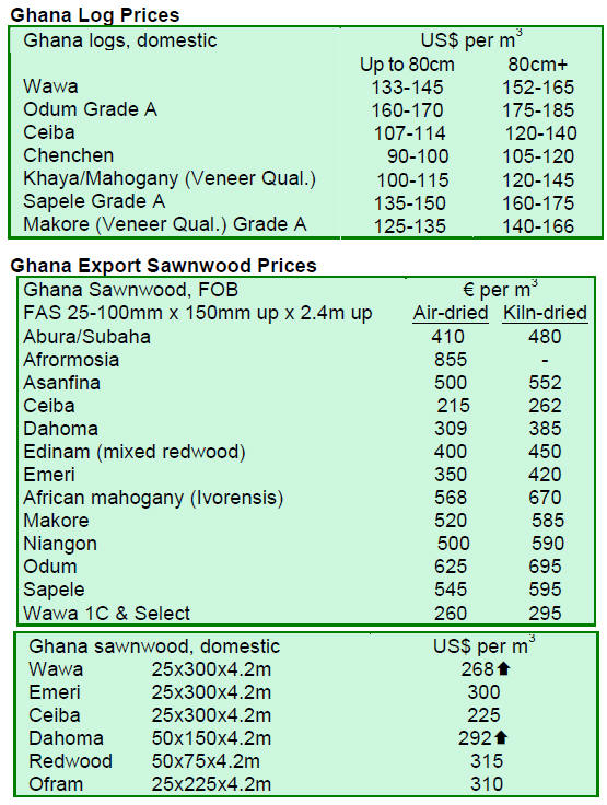 2. GHANA Higher costs pushing up timber prices Under the prevailing situation, timber operators are facing difficulties in stabilising their business and meeting market demand. Faced with a shortage of raw material, a hike in fuel prices and higher operational costs due to higher electricity and water tariffs imposed by the Public Utility Regulatory Commission (PURC) last year, producers are likely to pass on these costs to the consumers, thereby pushing prices of timber products up. Inflation eased in December In terms of economic growth, the World Bank has projected that Ghana will be the fastest growing economy in Sub-Saharan Africa, with a growth rate of 13.4% in 2011 and 10% in 2012. According to the World Bank, Ghana is in position to register strong economic growth particularly in the construction sector as large infrastructure projects are being implemented.