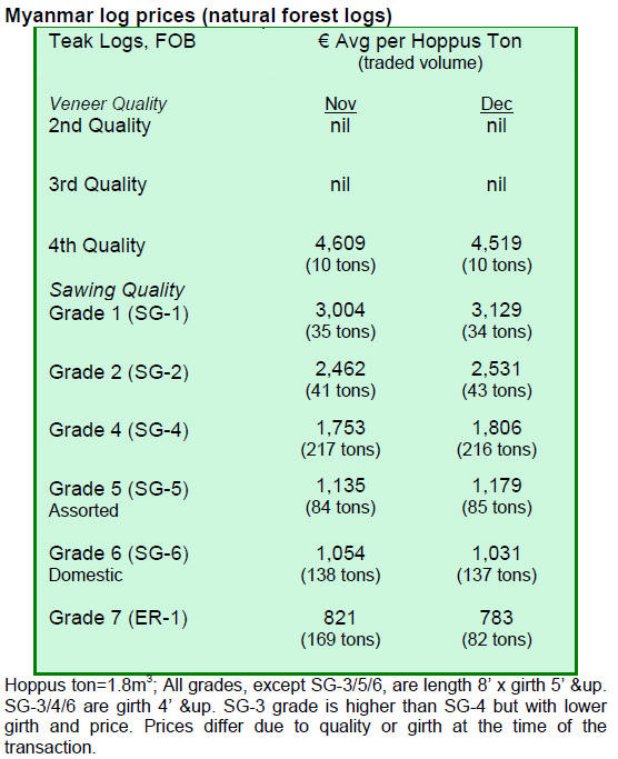 Purchases of Myanmar teak by country in December