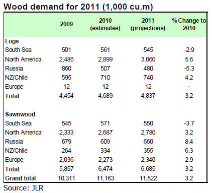 JLR reports on wood demand projections for 2011