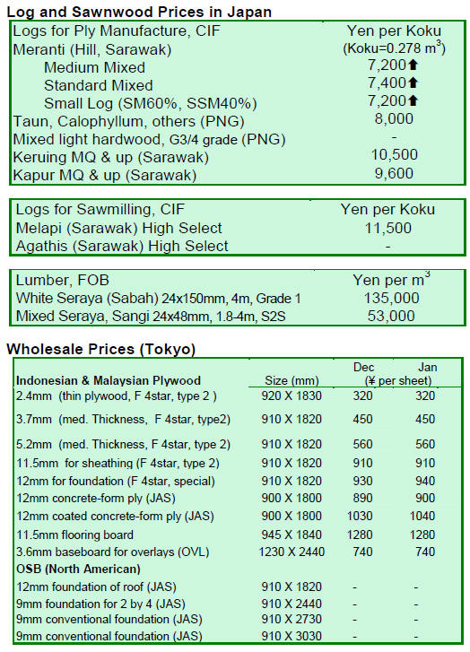 logs. Small meranti logs are now priced at Yen 6,600-