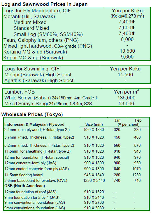 meranti logs, and Yen 6,100-6,200 per koku for super